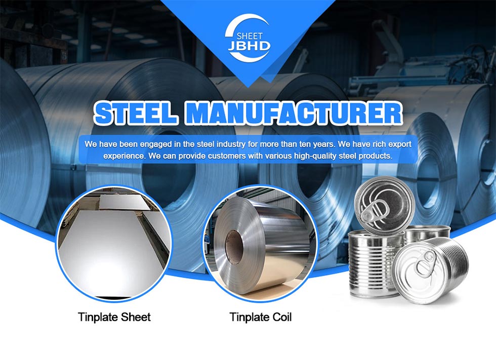 As a leading exporter of high-quality tinplate (electrolytic tin-coated steel), Wuxi Jianbanghaoda Steel Co.,Ltd. is specialized in producing high quality of Tin Steel Tinplate Sheet for Food Cans Packaging. Τα προϊόντα μας συμμορφώνονται με τα πρότυπα ASTM/JIS και το ISO 9001 πιστοποιημένο. Χρησιμοποιούμε προηγμένες γραμμές παραγωγής και αυστηρό έλεγχο ποιότητας για να εγγυηθεί την ακρίβεια και την ανθεκτικότητα. Έχουμε κερδίσει εταιρικές σχέσεις σε όλη την Ευρώπη, τη Βόρεια Αμερική και τη Νοτιοανατολική Ασία με ανταγωνιστικές τιμές, αξιόπιστη παράδοση και προσαρμοσμένες προδιαγραφές.